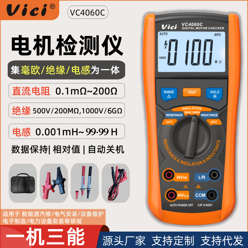 三合一:绝缘电阻(IR)、毫欧电阻和电感测量,提供全面的电机健康评估。
