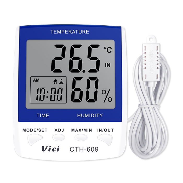 CTH-609 室内外数字温湿度表,远距离测量室外的温度,时钟、日期功能,最大值、最小值温湿度储存功能。