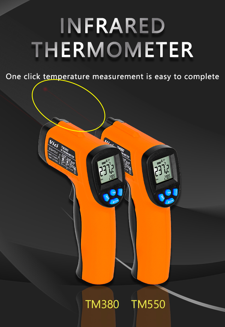 TM550 infrared thermometer is accurately measure the fixed point temperature of dangerous scenes or unreachable objects from a distance. It can measure water temperature, oil temperature, kitchen baking, boiler, smelting, kiln and other temperatures; temperature testing range:-50℃ to 550℃ | -58℉ to 1022℉
