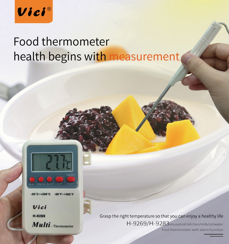 H-9283 high/low temperature alarm thermometer can accurately measure the temperature of food so that the most delicious food is cooked at a specific temperature. Measure various household water temperature, baby food, milk temperature, kitchen cooking, baking and other temperatures.