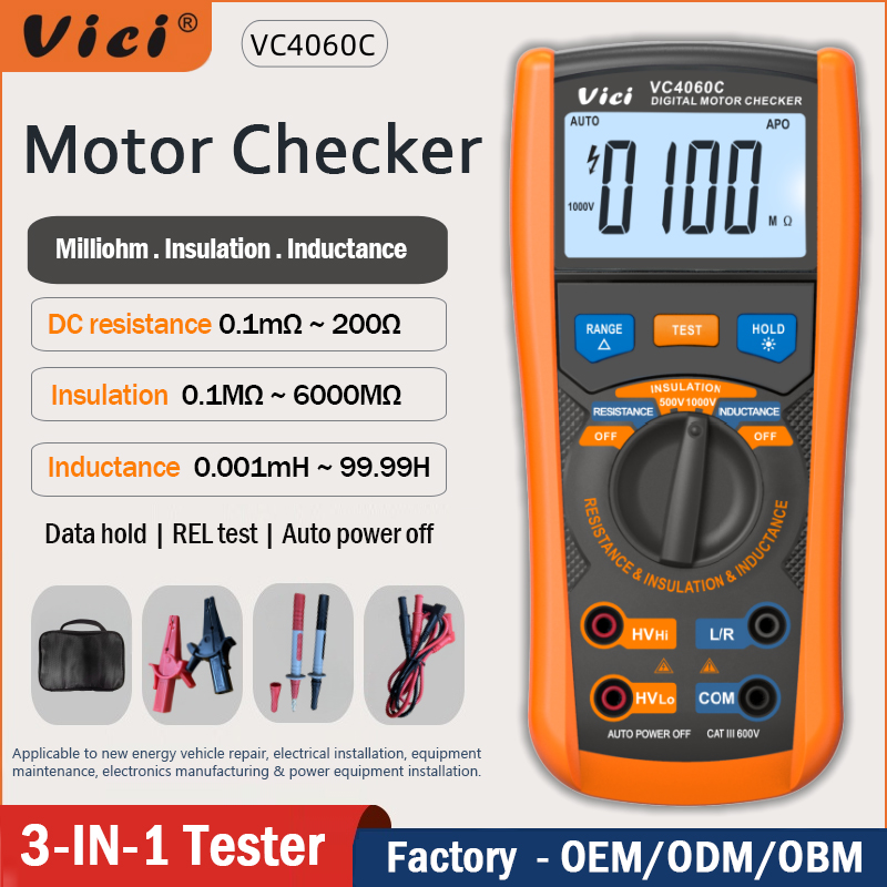 VC4060C Motor Checker, Insulation resistance, Milliohm resistance, Inductance, Data hold, Backlight