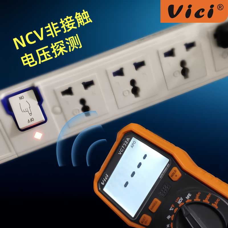 VC732A NCV T-RMS Duty-cycle Diode hFE tests digital multimeter with data-hold, backlight, torch functions