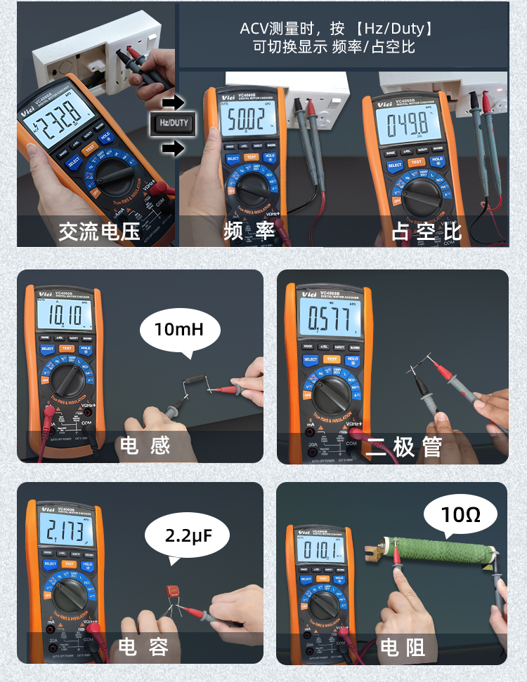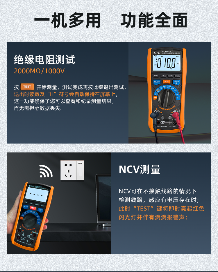 VC4060B 马达检测,电感,绝缘电阻测试仪 真有效值测量, NCV测量,读数保持,背光显示,最大值/最小值及最大值