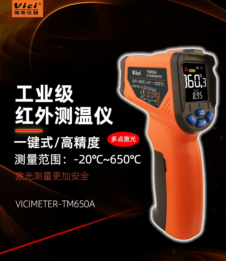 TM650A infrared thermometer, accurately measure the fixed point temperature of dangerous scenes or unreachable objects from a distance. It can measure water temperature, oil temperature, kitchen baking, boiler, smelting, kiln and other temperatures, testing range is -20℃~650℃ / 4℉~1202℉