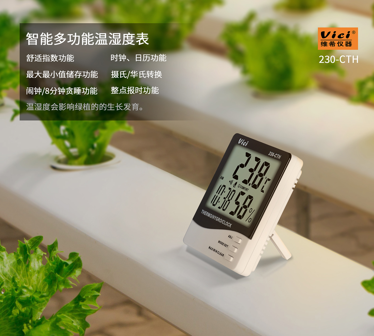 230-CTH 数字温湿度表,时钟、日期功能,最大值、最小值温湿度储存功能。
