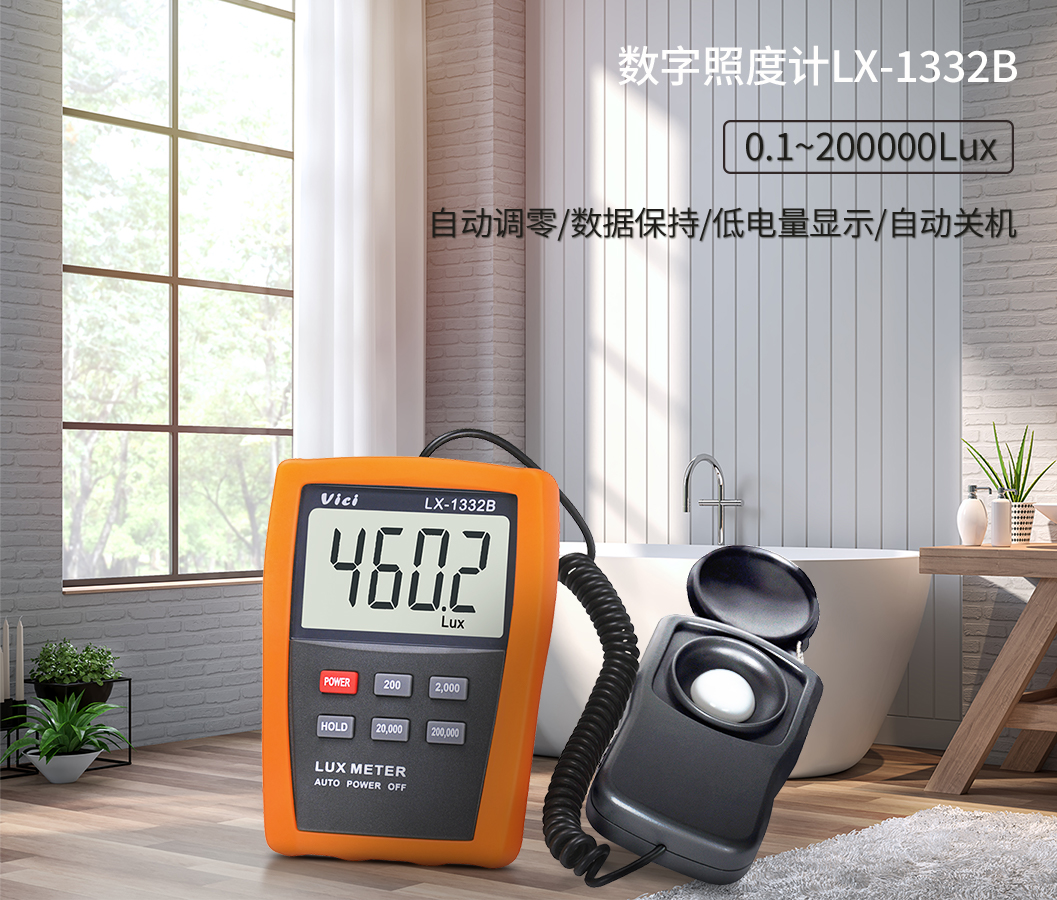 LX-1332B 高精度数字照度计,色温2856K标准校正,数据保持,智能自动关机。
